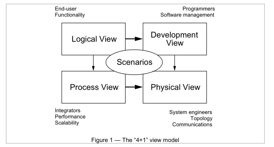 Tying these together is a scenario view that captures key system use cases.